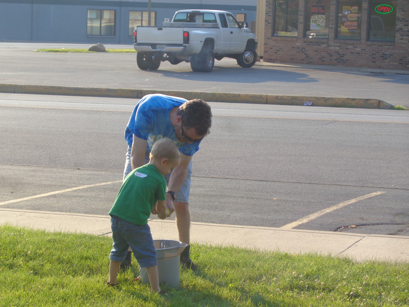 Luke participating in the wet-sponge relay race, which may or may not have tied directly to the theme.
