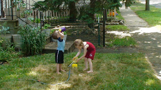 With all the heat in the last few weeks (taken July 19, 2011), playing in the sprinkler seems like a good plan.